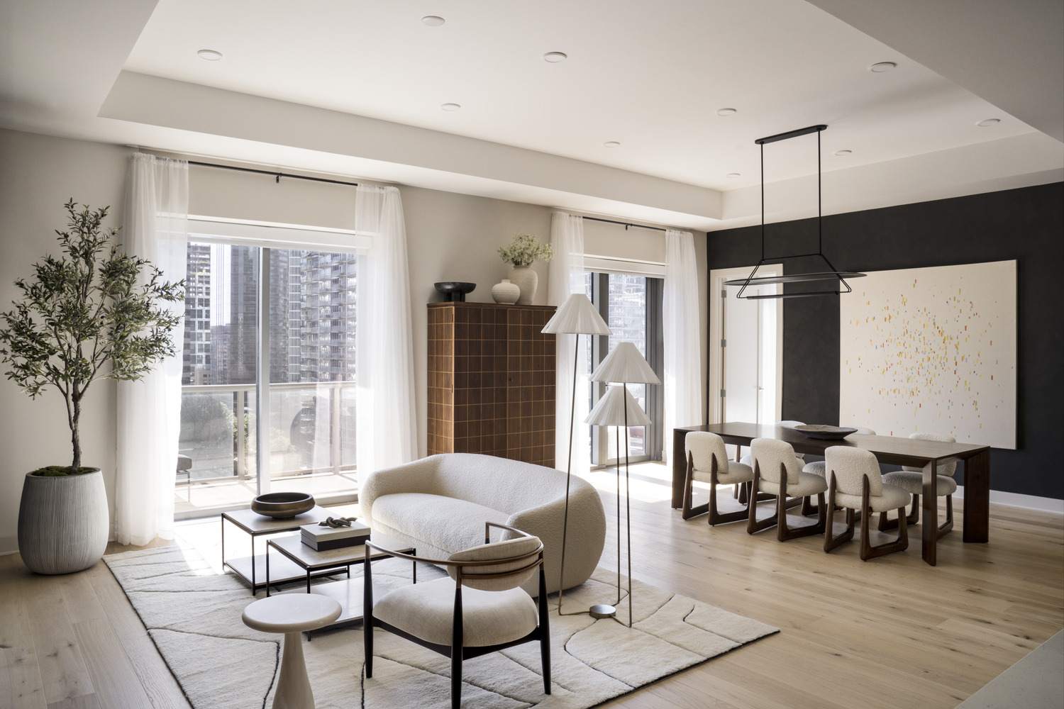 The residences at 40 West 12th feature expansive layouts with soaring ceilings, professional-grade Sub-Zero and Wolf appliances, in-wall fireplaces, and large balconies offering striking views of the Atlanta treeline. Amenities include a four-season pool with skylights and retractable doors, a sky terrace, and access to the Epicurean Hotel’s services, providing a hospitality-infused lifestyle.