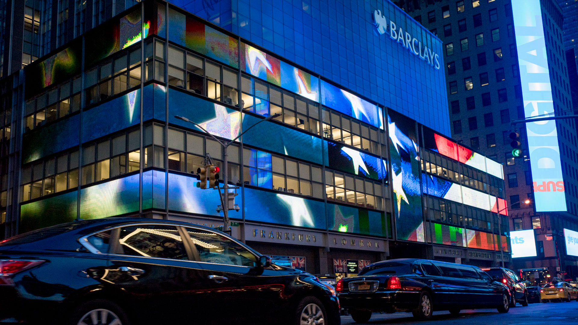 Developed on a prime Seventh Avenue parcel assembled by Rockefeller Group adjacent to 1251 Avenue of the Americas, 745 Seventh Avenue is the most recent office building developed in the expansion of Rockefeller Center. The 1.1 million square foot building, co-developed by Rockefeller Group and Hines, was originally built for Morgan Stanley and later purchased by Lehman Brothers for its planned headquarters. Today the building is fully occupied by Barclays. The project includes a 15,000-square-foot illuminated LED display at its base, prominently displaying the logo and content of one of the world’s leading banking and financial services brands.