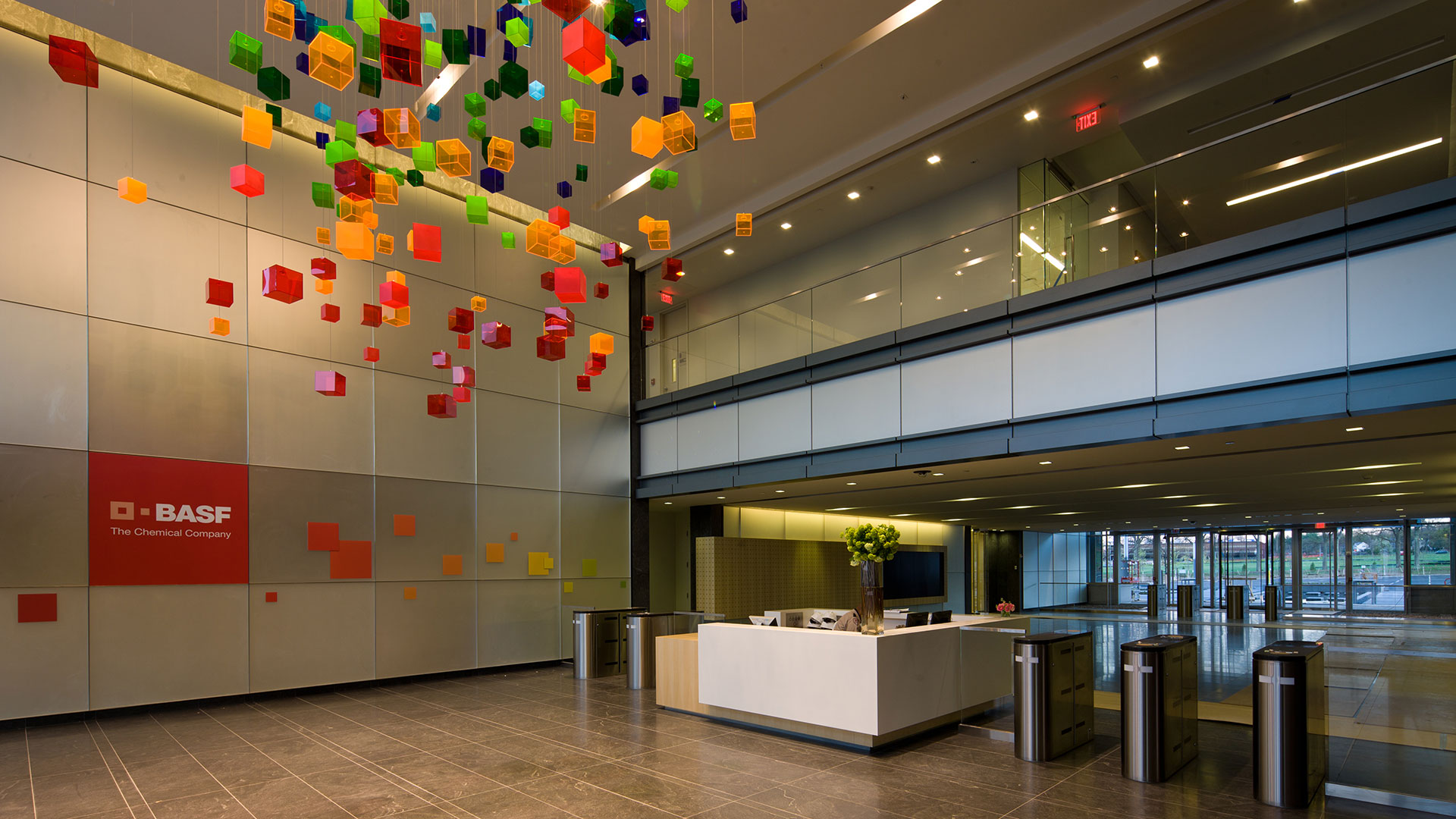• Located at 100 Park Avenue, the BASF Building boasts a welcoming and inspiring two-story lobby.